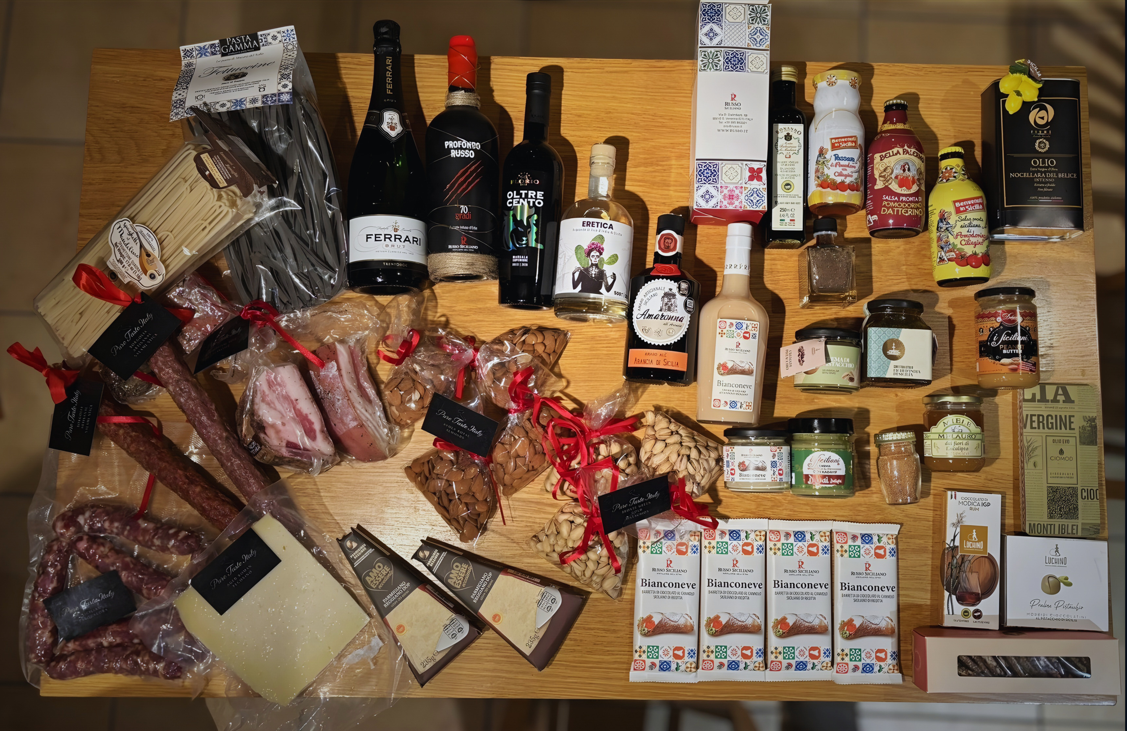 An exclusive Mediterranean basket featuring rare, artisan delicacies — carefully curated, hard to find, and rich in character — capturing the true essence of Italy, the Mediterranean, and Sicily’s sun-drenched golden lands.