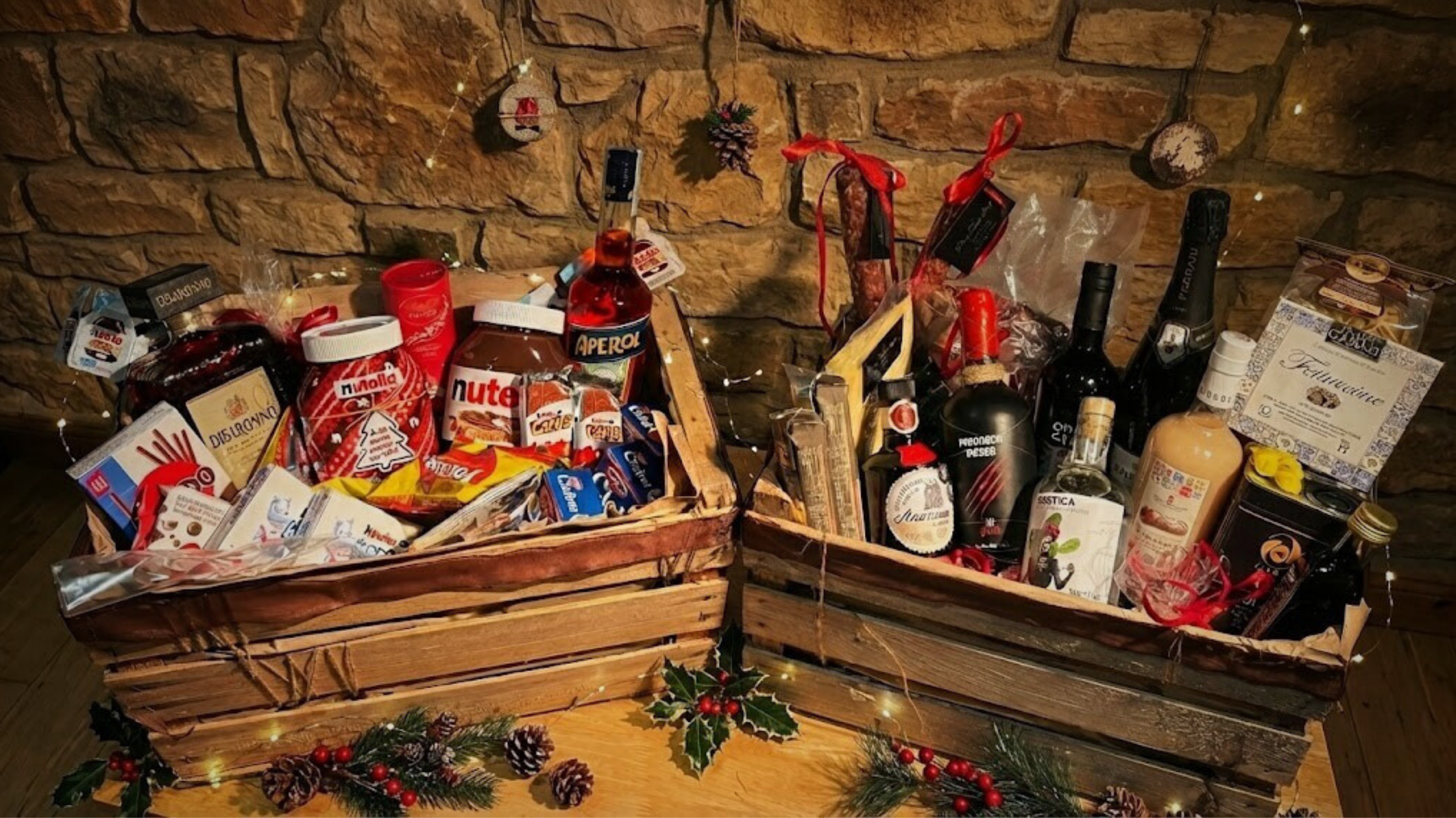An irresistible basket filled with Italy's most beloved brands, from iconic aperitif bottles to nostalgic snacks and chocolate treats: a playful and delightful collection that everyone will instantly fall in love with.